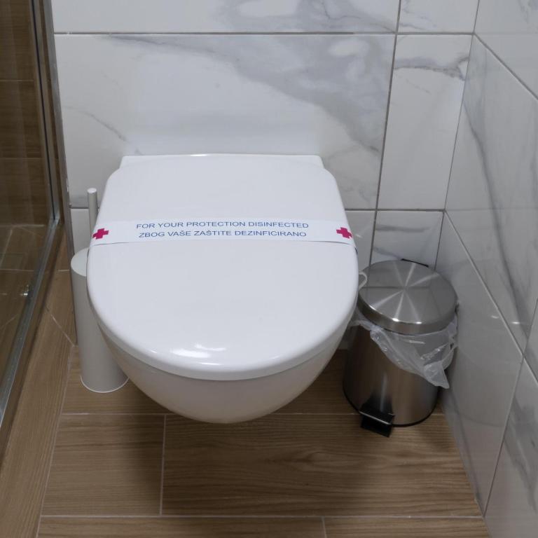 tuš, fen za kosu, besplatni toaletni pribor, toalet, papuče, kada ili tuš, peškiri, toalet papir, četkica za zube, šampon, sapun za telo, kapa za tuširanje